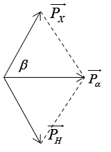 Vẽ giản đồ véc tơ ; gọi β là góc hợp bởi hướng lệch của hạt X so với hướng chuyển động của hạt α