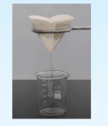 F - Đổ hỗn hợp vào phễu có giấy lọc, sau đó một thời gian thu được cát trên giấy lọc và dung dịch muối ăn.