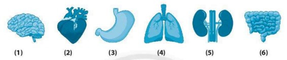 (1) – Bộ não, (2) – Tim, (3) – dạ dày, (4) – Phổi, (5) – Thận, (6) – Ruột.