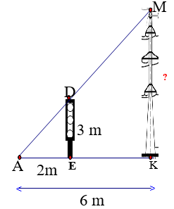 Tính chiều cao của cột đèn trong hình vẽ, biết bạn nhỏ đứng song song với cột đèn.
