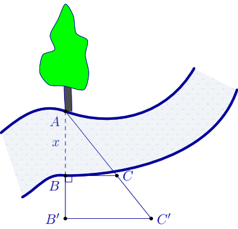 Khi đó, độ rộng x của khúc sông là: