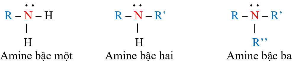Bậc amine được tính bằng số gốc hydrocarbon liên kết trực tiếp với nguyên tử nitrogen. Theo đó, amine được phân loại thành amine bậc một, amine bậc hai và amine bậc ba.