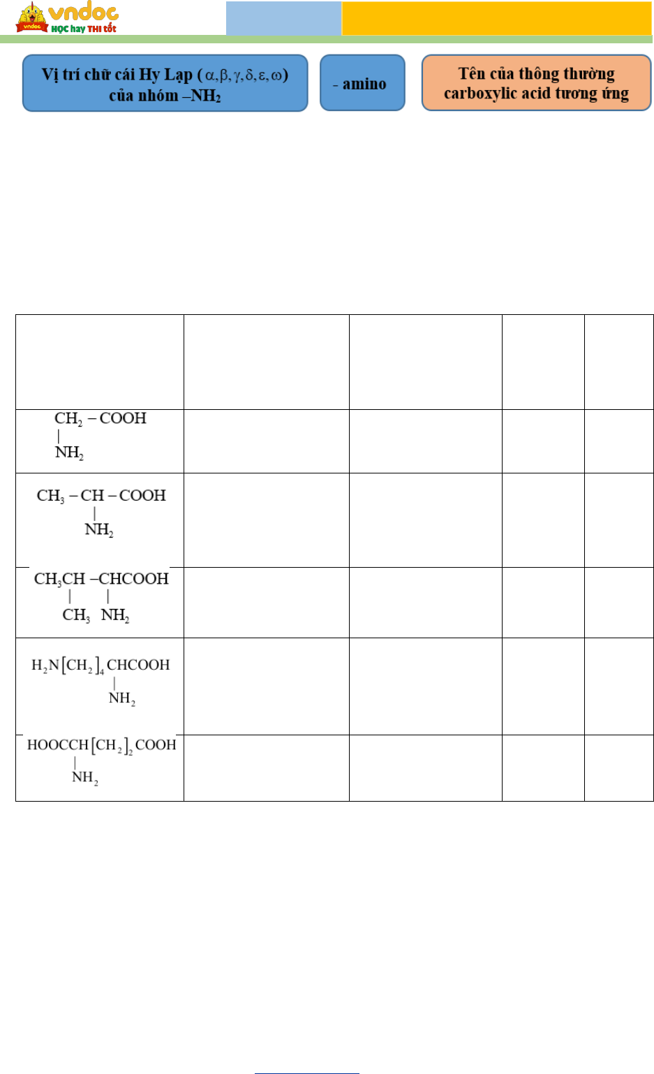 - Tên bán hệ thống: vị trí của nhóm amino được kí hiệu bằng chữ cái Hy Lạp (α, β,...)