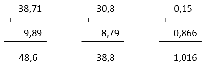 Để tính tổng nhiều số thập phân ta làm tương tự như tính tổng hai số thập phân.
