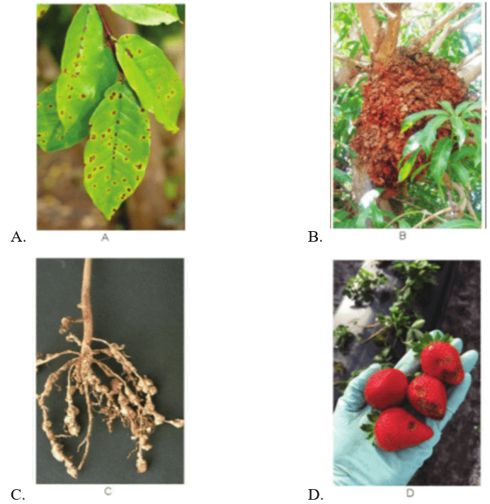 Câu 5. Hình ảnh nào cho thấy sâu, bệnh gây hại cho rễ?