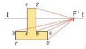 Câu 6. Hình nào sau đây thể hiện bước 5 của quy trình vẽ hình chiếu phối cảnh một điểm tụ?