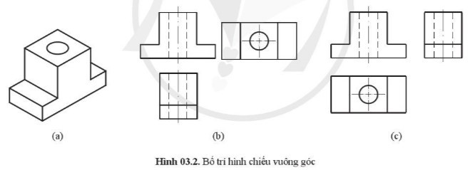 4. Cho vật thể (hình 03.2a). Hãy cho biết hình 03.2b và hình 03.2c, hình nào bố trí đúng các hình chiếu vuông góc của vật thể? Tại sao?