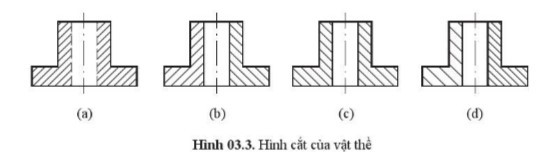 + Hình cắt bán phần: Là hình cắt của vật thể đối xứng được vẽ một nửa là hình chiếu, còn một nửa đối xứng kia là hình cắt và được phân chia bởi trục đối xứng