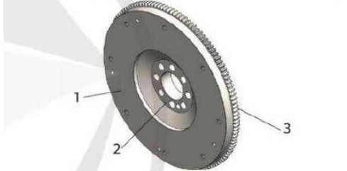 - Bộ phận chính của bánh đà gồm: mặt đĩa ma sát, mặt bích để lắp bánh đà với đuôi trục khuỷu và vòng răng ăn khớp với bánh răng của máy khởi động để khởi động động cơ.