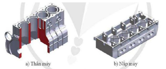 Hình 19.2. Thân xilanh động cơ làm mát bằng nước và làm mát bằng không khí