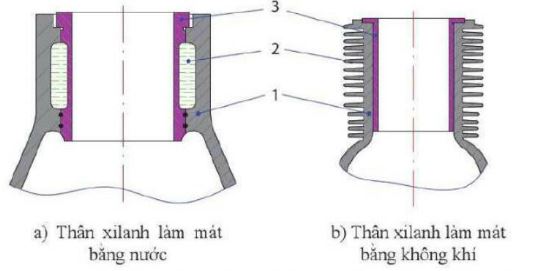 1. Thân xilanh, 2. Áo nước (hoặc cánh tản nhiệt), 3. Xilanh.