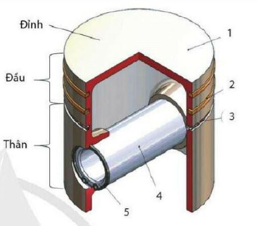 - Pít tông được chia làm ba phần: đỉnh, đầu và thân (hình 19.4).