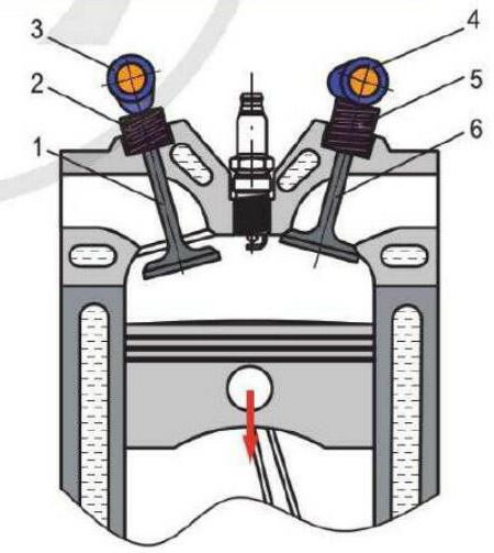 1, 6 Xupáp; 2,5. Lò xo xu páp; 3, 4. Vấu cam