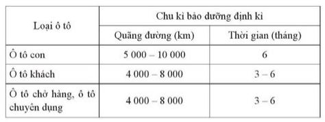 Bảng. Chu kì bảo dưỡng định kì