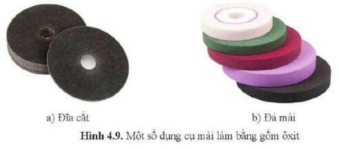 - Gốm ôxit có độ bền nhiệt và độ bền cơ học rất cao, thường được dùng để chế tạo đá mài, đĩa cắt, lưỡi cắt của dụng cụ cắt.... (hình 4.9).
