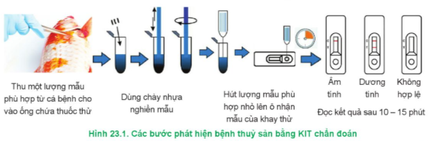 - Giúp kiểm tra sự có mặt của tác nhân gây bệnh một cách nhanh chóng, cho kết quả sau 10 đến 30 phút, từ đó có thể xử lí bệnh kịp thời; quy trình thực hiện đơn giản, không yêu cầu kĩ thuật cao, tiện lợi, có thể sử dụng ngay tại ao, đầm nuôi, tiết kiệm thời gian vận chuyển mẫu.