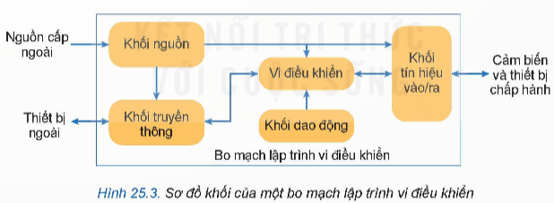 - Khối tín hiệu vào/ra: kết nối các cổng vào/ra của vi điều khiển với cảm biến hay thiết bị chấp hành.