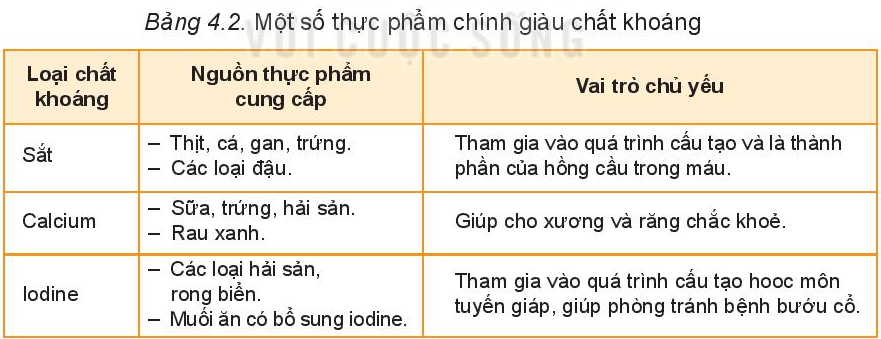 - Những thực phẩm chính: đều có trong thực phẩm (Hình 4.1e, Bảng 4.2)