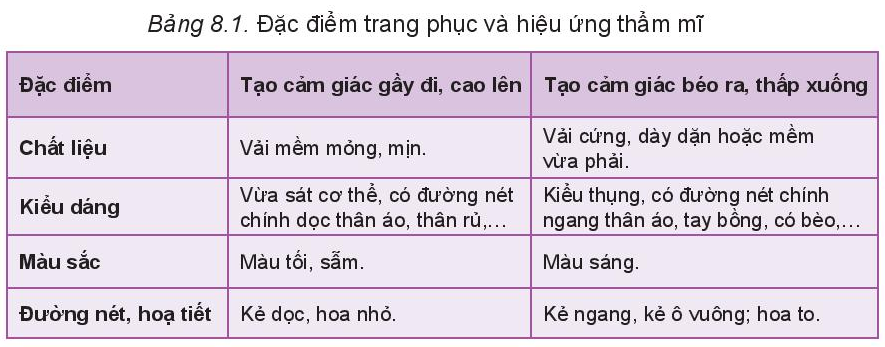 Câu 9. Để tạo cảm giác gầy đi, cao lên cho người mặc, cần lựa chọn trang phục có đường nét, họa tiết như thế nào?