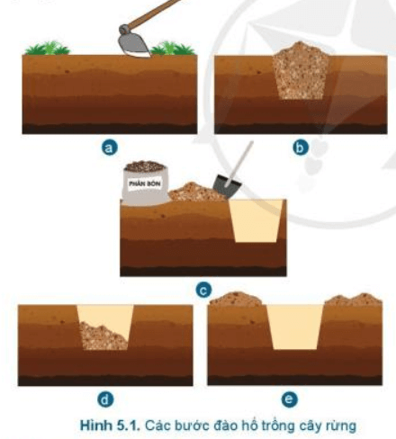 Quy trình đào hố trồng cây rừng gồm 5 bước: