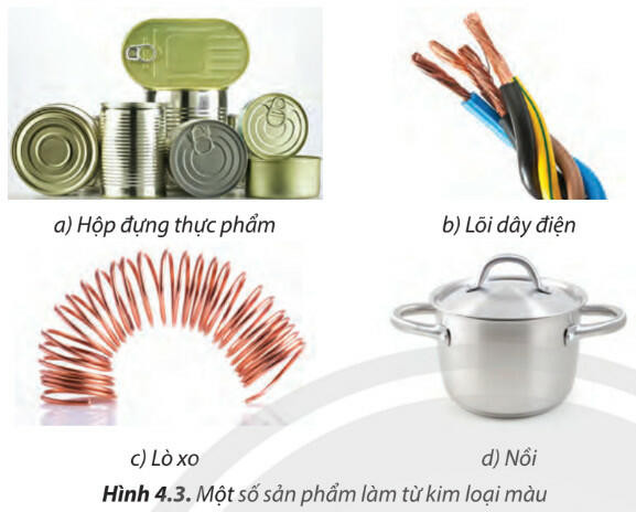 - Các kim loại không chứa sắt được gọi là kim loại màu: nhôm, đồng, bạc, thiếc, kẽm,...