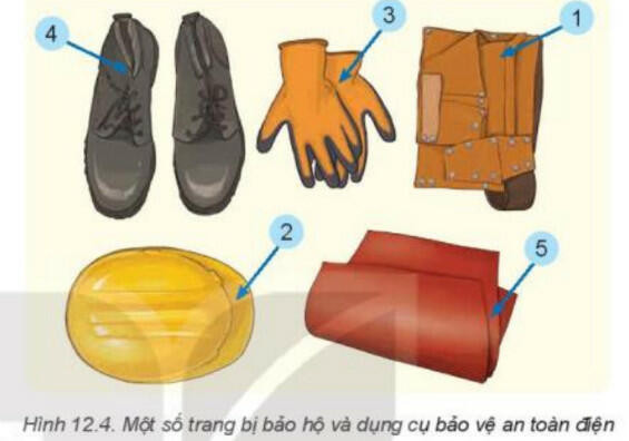 - Trang bị bảo hộ bảo vệ an toàn điện bao gồm: quần áo bảo hộ, mũ bảo hộ; găng cách điện, ủng cách điện; thảm cách điện,...