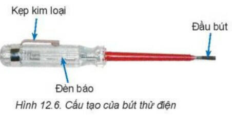 - Bút thử điện (Hình 12.6) là dụng cụ thông dụng để kiểm tra nhanh tình trạng của các thiết bị.