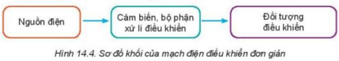 Mạch điện điều khiển là mạch điện được sử dụng để thực hiện chức năng điều khiển. Mạch điện điều khiển thường có sơ đồ khối như Hình 14.4.