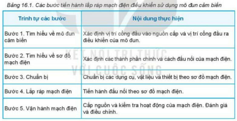 Hoạt động lắp ráp mạch điện điều khiển sử dụng mô đun cảm biến được đánh giá theo các tiêu chỉ sau: