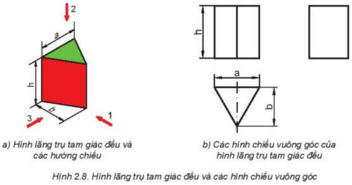- Hình 2.8a biểu diễn một hình lăng trụ tam giác đều và các hướng chiếu.