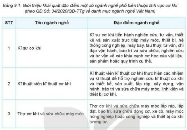 1. Đặc điểm một số ngành nghề phổ biến trong lĩnh vực cơ khí