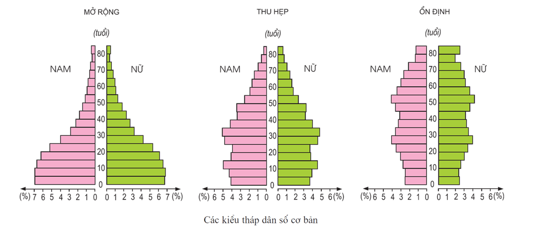 + Tháp dân số thường được sử dụng trong nghiên cứu dân số. Tháp dân số thể hiện dân số theo từng độ tuổi, giới tính, tình hình sinh, tử. Có ba kiểu tháp dân số cơ bản.