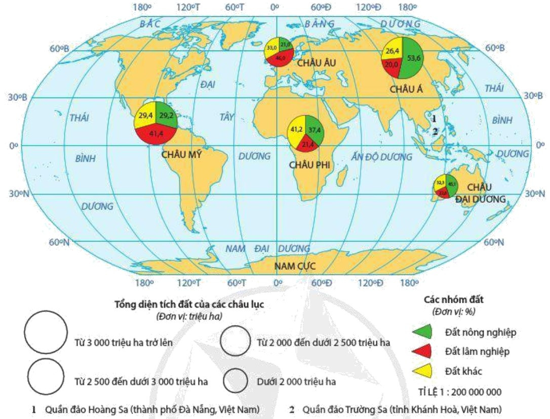 Bản đồ quy mô và cơ cấu sử dụng đất của các châu lục năm 2019