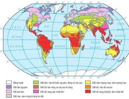 Bản đồ các nhóm đất chính trên thế giới (thể hiện bằng phương pháp khoanh vùng)