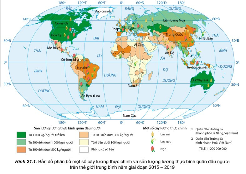 - Cây lương thực chính trên thế giới gồm lúa gạo, lúa mì và ngô.