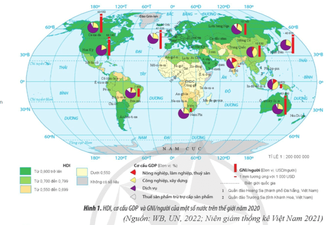 Câu 3. Các nước phát triển có trình độ phát triển kinh tế - xã hội cao hơn hẳn các nước đang phát triển, thể hiện chủ yếu ở việc