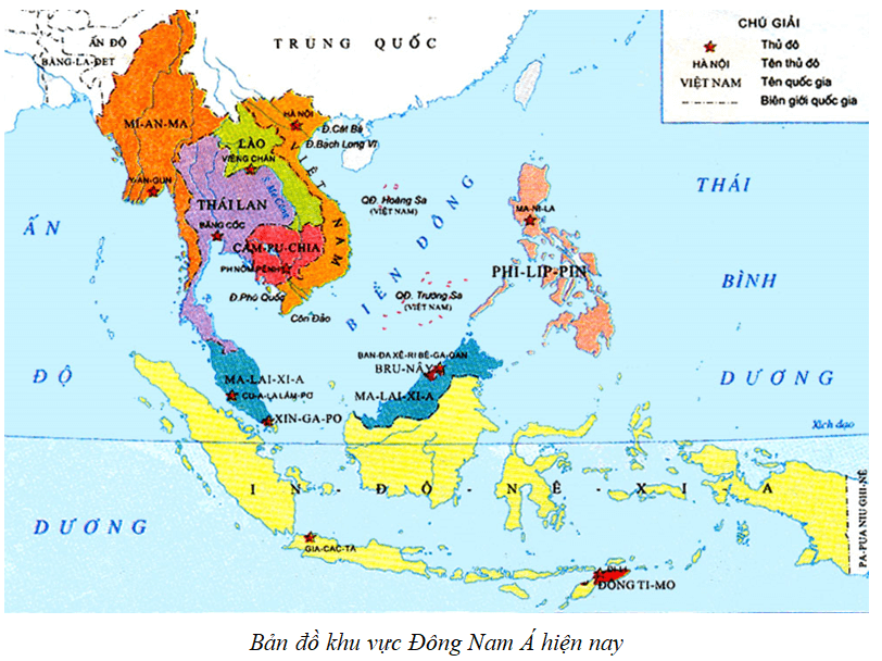 + Khu vực hải đảo (quần đảo Mã Lai) bao gồm các quốc gia: Ma-lai-xi-a, Xin-ga-po, In-đô-nê-xi-a, Bru-nây, Phi-líp-pin và Ti-mo Lét-xtê.