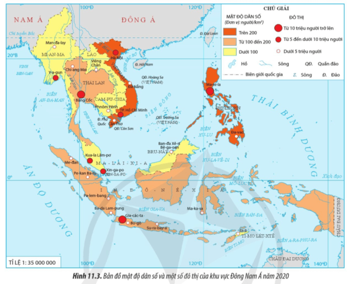 Câu 9. Biểu hiện nào sau đây chứng tỏ dân cư ở Đông Nam Á phân bố không đều?
