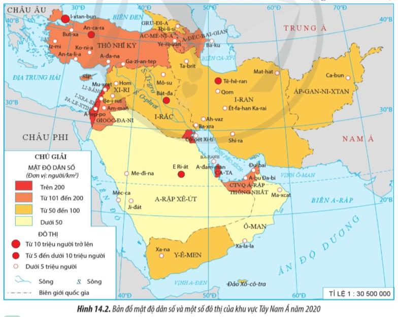 + Dân cư tập trung đông ở các đô thị lớn và vùng ven Địa Trung Hải, đồng bằng Lưỡng Hà.