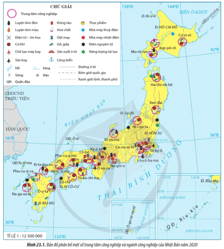 + Các trung tâm công nghiệp lớn: Tô-ky-ô, I-ô-cô-ha-ma, Ca-oa-xa-ki, Na-gôi-a, Ky-ô-tô, Ô-xa-ca, Cô-bê, Phu-cu-a-ma,...