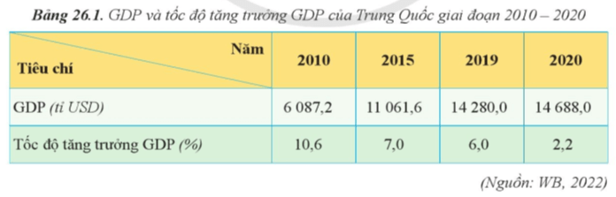 - Năm 2020, GDP của Trung Quốc đạt 14688,0 tỉ USD, chiếm khoảng 17,4 % GDP toàn thế giới.