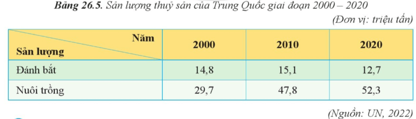 - Thuỷ sản: Trung Quốc là nước sản xuất thuỷ sản lớn, tổng sản lượng thuỷ sản đứng hàng đầu thế giới.