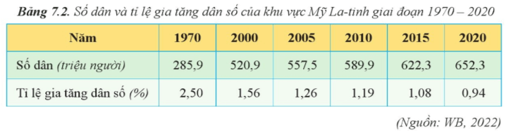 + Mỹ La-tinh là khu vực đông dân, đạt 652,3 triệu người vào năm 2020.