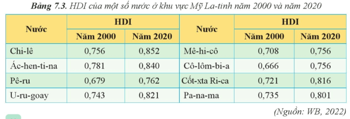 - Những năm gần đây, chất lượng cuộc sống của người dân Mỹ La-tinh được tăng lên nhờ kinh tế của các quốc gia ngày càng phát triển. Nhìn chung, chỉ số HDI khu vực Mỹ La-tinh khá cao, có xu hướng tăng và khác nhau giữa các nước.