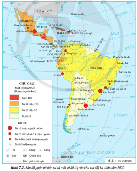 + Ba đô thị đông dân bậc nhất khu vực (năm 2020) là: Bu-ê-nốt Ai-rét (15,2 triệu người), Mê-hi-cô Xi-ti (21,8 triệu người), Xao Pao-lô (22,0 triệu người).