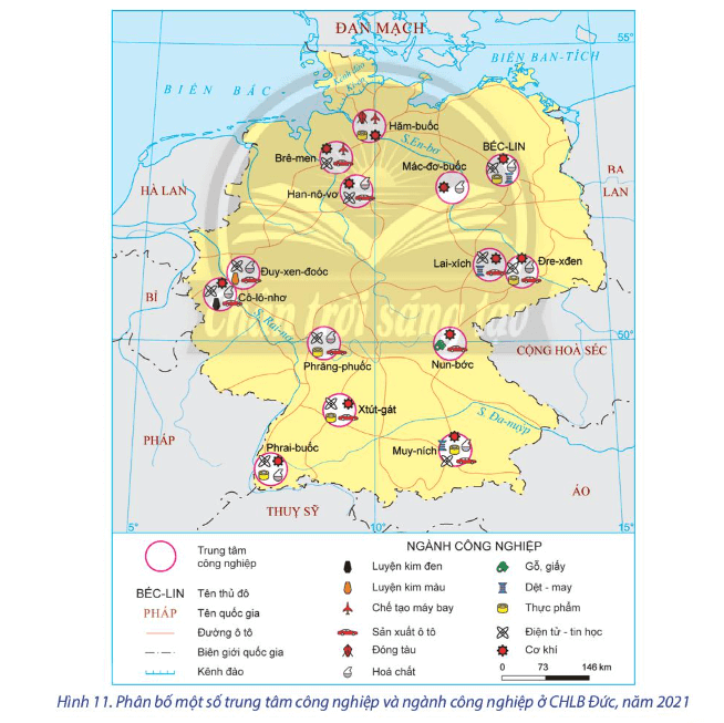 - Lược đồ sự phân bố một số trung tâm công nghiệp và ngành công nghiệp ở CHLB Đức, năm 2021