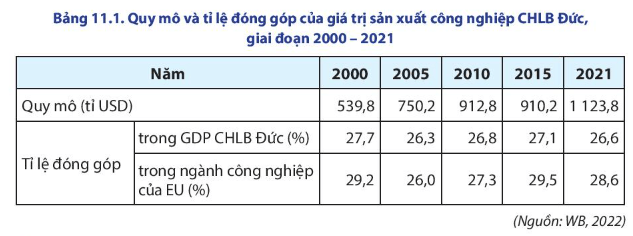 - Quy mô và tỉ lệ đóng góp giá trị sản xuất công nghiệp của CHLB Đức, giai đoạn 2000 - 2021