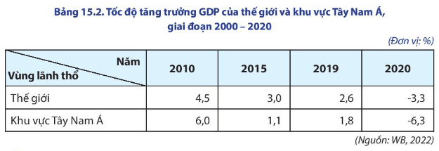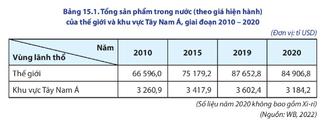 - Khu vực Tây Nam Á chiếm 3,7% GDP toàn thế giới (năm 2020).