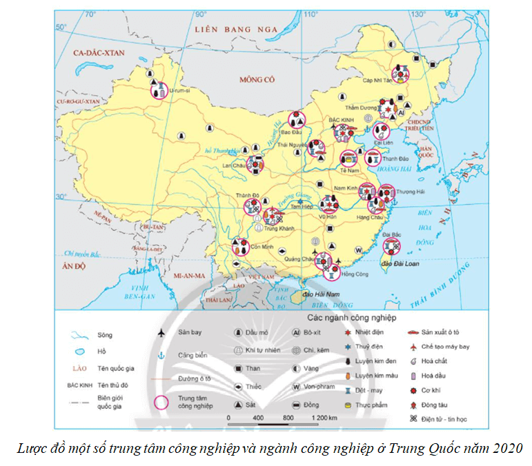 - Các trung tâm công nghiệp chính của Trung Quốc phân bố chủ yếu ở miền Đông, đặc biệt là vùng duyên hải với các trung tâm như: Bắc Kinh, Nam Kinh, Thượng Hải, Quảng Châu,...