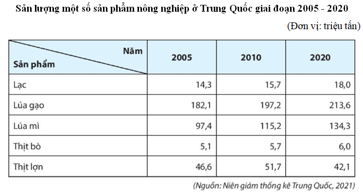 - Công cuộc cải cách nông nghiệp của Trung Quốc được thực hiện với quy mô lớn từ cuối năm 1978 với những chính sách như: giao đất, tự chủ trong sản xuất và tiêu thụ sản phẩm, phát triển kinh tế hộ gia đình, phát triển cơ sở hạ tầng, đẩy mạnh khoa học - kĩ thuật và ứng dụng công nghệ trong sản xuất nông nghiệp,... Nhờ đó, ngành nông nghiệp Trung Quốc đã đạt được nhiều thành tựu nổi bật.